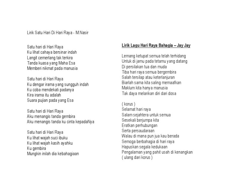 Tuhan Yesus mempersatukan kita. Nasir Warner Chappell Music Publishing M Sdn Bhd Lagu Raya - Ramlah Ram 57 MBZulu X Ray Mike. Download senarai lagu raya baru dan lama lirik lagu raya - Blog hamba Ilahi motivasi dan muhasabah agama secara santai sambil berkongsi tips dan tip blogging terbaik.
